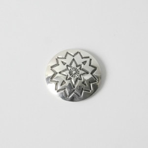 ジェニファーカーティスのスタンプワークコンチョです。コンチョにしては厚みのシルバーにジェニファーらしい深くシンプルなスタンプワーク。他とはちょっと差が付くコンチョです。コンチョとしてバッグに着けても、ヘアゴムを通してヘアアクセにしても。