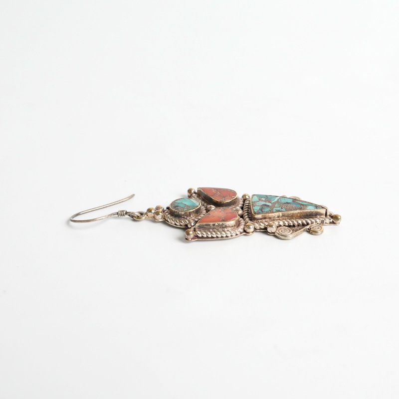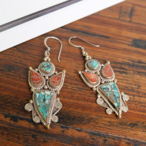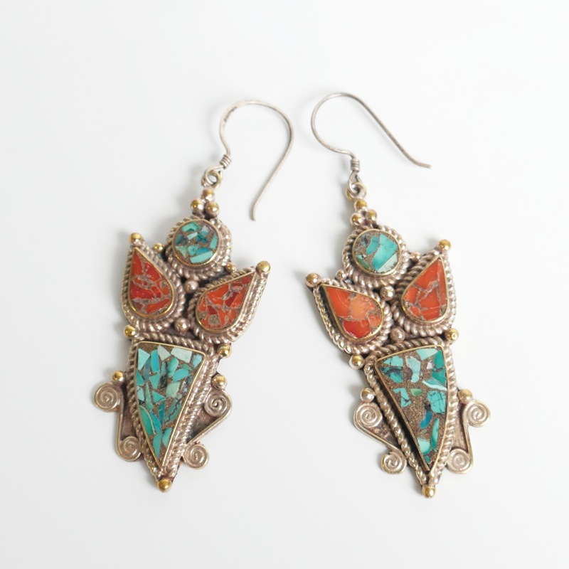 中東から中国にかけてのかつての交易路「シルクロード」の影響を受けて発展したデザインを取り入れたシルクロードアクセサリー。エキゾチックな雰囲気あふれるデザイン。細かい装飾やターコイズ、コーラルなどを組み合わせたピアス。ひときわ目立つその存在感で、お顔回りを華やかに見せてくれる。デイリースタイルに取り入れておしゃれが楽しめます。