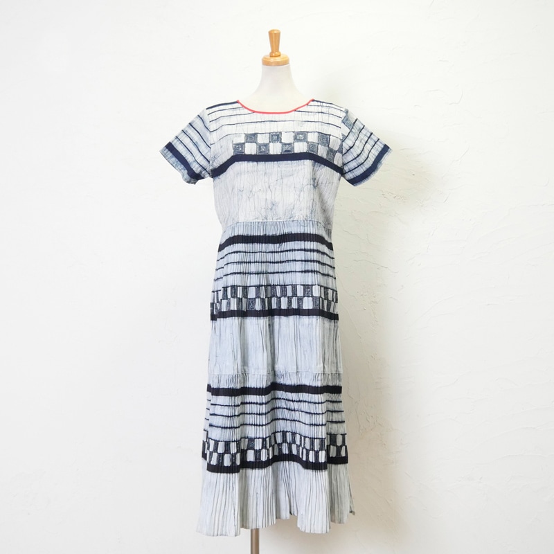 モン族の衣装であるプリーツスカートから作られたもの。手織りの麻生地にモン族が得意とする藍のろうけつ染めが施されています。年月を経るごとに味わい深く変化していきます。