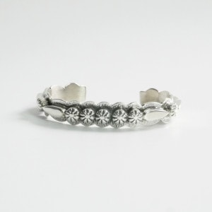 1955年アリゾナ州に生まれ、1970年代後半からジュエリー製作を始めたトーマスジム。 Ronnie Bedonie、Pat Bedonieとも血縁があり、Wilson Jimを兄弟に持つトーマスは、家族の影響でシルバー製作を始めました。ヘビーゲージのシルバーを使ったオールドスタイルを貫く彼の作品は、様々な賞を獲得し、今では数少なくなった本当のオールドスタイルのスタンプワークが感じられるものばかりです。
