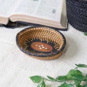 楕円型サイズのアタトレイ。鍵や腕時計、アクセサリー等を収納するのに使いやすいサイズ感。美しい編み込みもさることながら、玄関やリビング等、ライフスタイルに合わせて活用方法は様々。