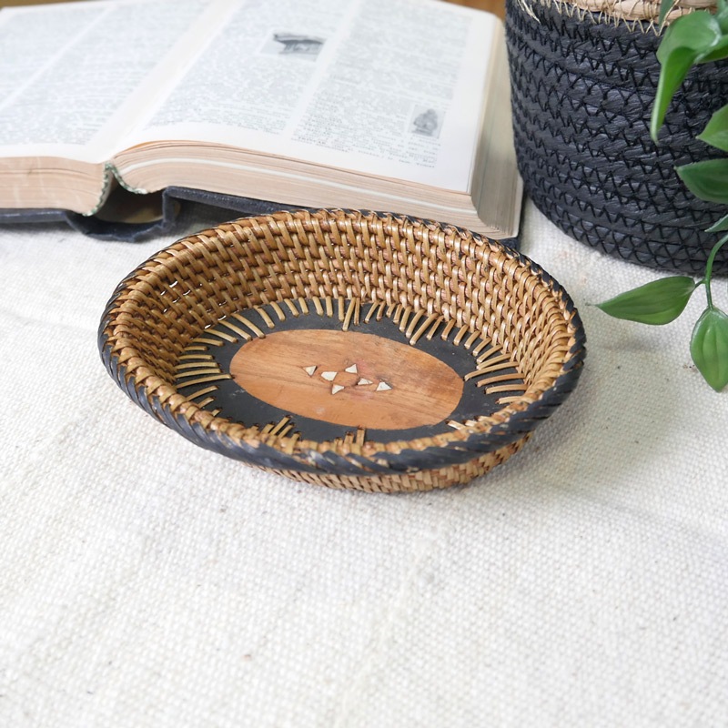 楕円型サイズのアタトレイ。鍵や腕時計、アクセサリー等を収納するのに使いやすいサイズ感。美しい編み込みもさることながら、玄関やリビング等、ライフスタイルに合わせて活用方法は様々。