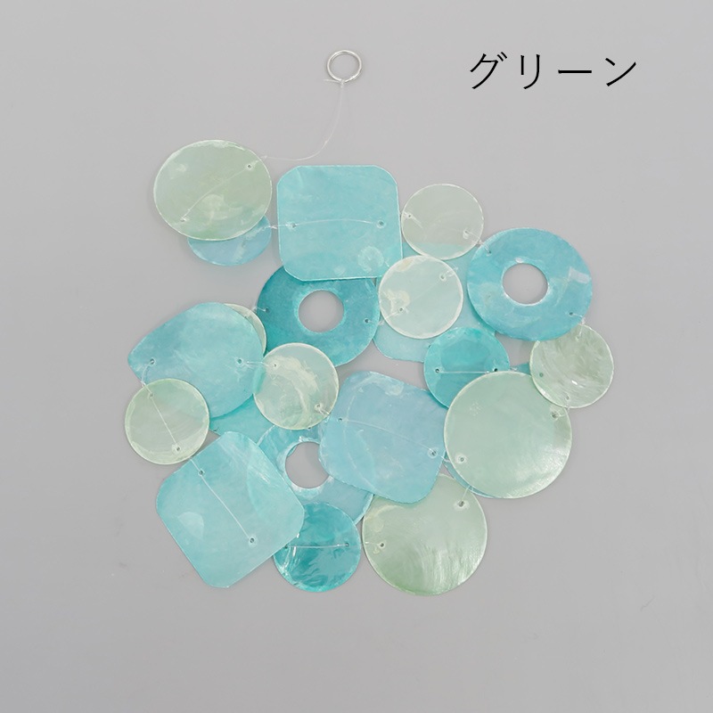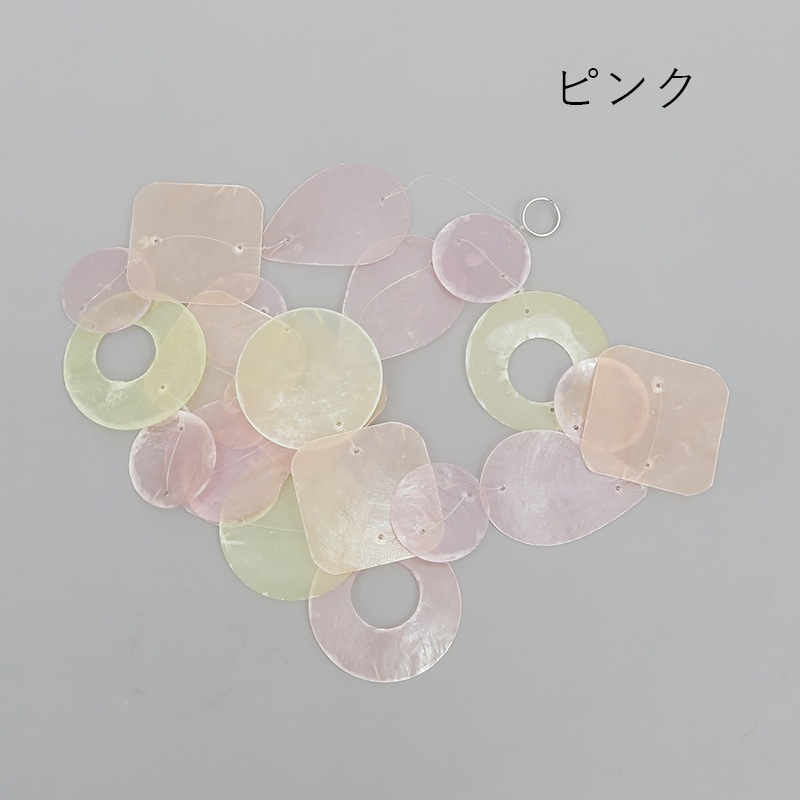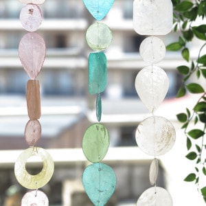シャラシャラとしたナチュラルなシェルの音が涼やかなハンギング。様々な色や形のシェルをワイヤーで繋げています。複数ぶらさげてインテリアを楽しみたいアイテム。