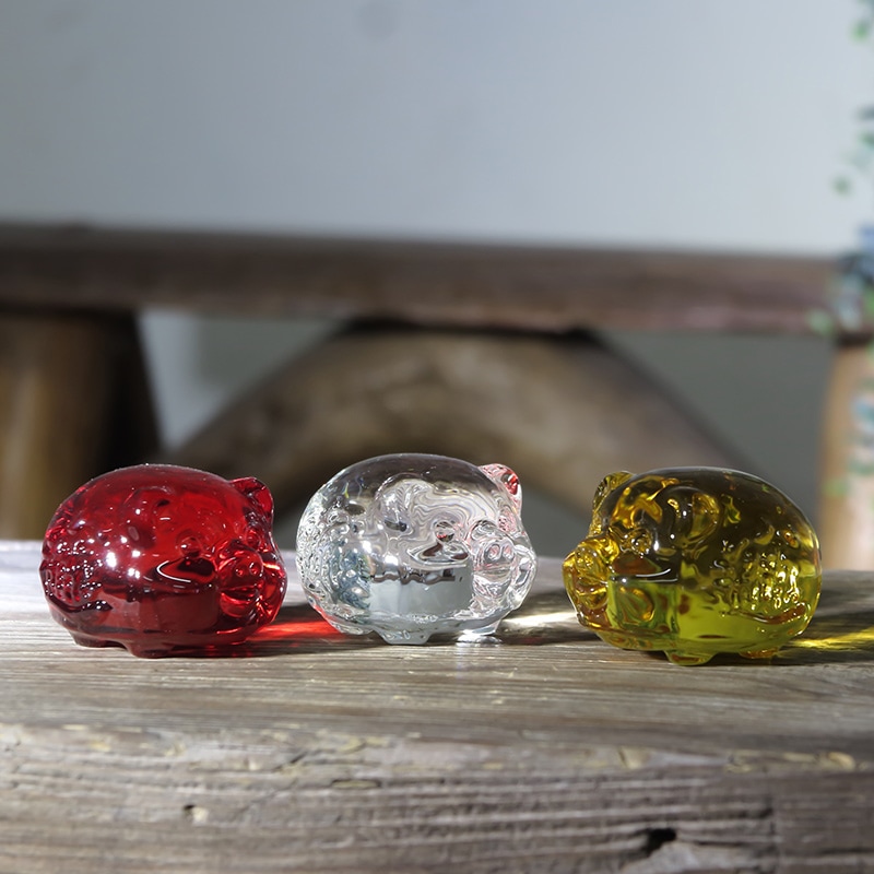中国では、豚は幸せを呼ぶ動物と言われています。ちょこんとデスクに乗るかわいいブタの置物は、ペーパーウェイトとしても。涼し気なガラス細工にも癒されます。
