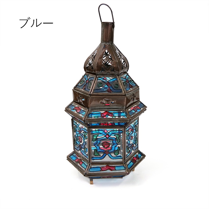 全てハンドメイドで作られたモロッコのキャンドルランタン。ハンドペイントで仕上げたガラス部分の装飾はまるでステンドグラスのような雰囲気。クラシカルにもレトロにも合う異国情緒あふれるインテリアです。