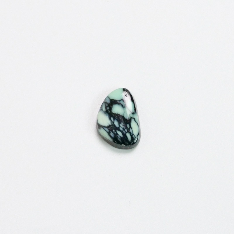 ほどよいサイズのニューランダーターコイズです。印象的なのはくっきりと濃く走る漆黒のマトリックス。クリームイエローから淡いグリーンへのグラデーションも魅力的です。ペンダント・バングル・大粒リング、どれにでも仕立てやすいサイズです。