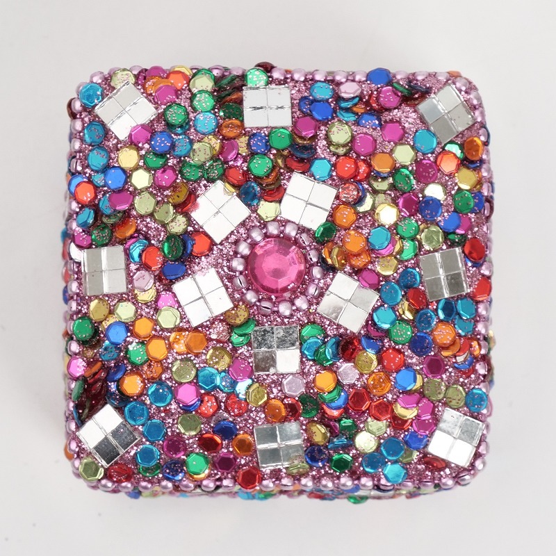 華やかなビーズとミラーワークが美しい小物入れ