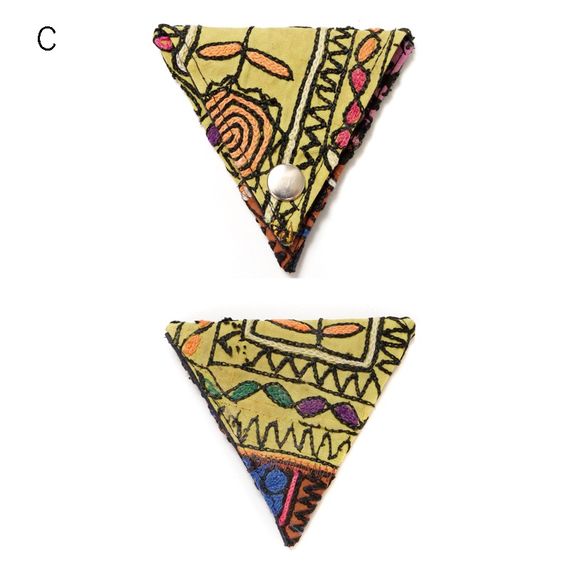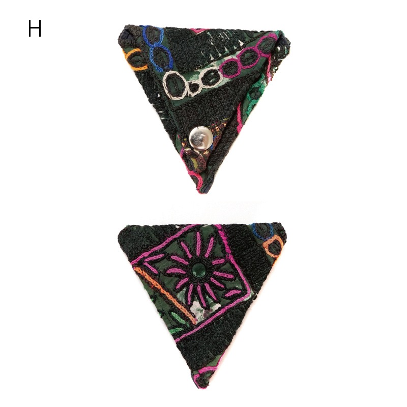 パキスタンのオールドドレスの刺繍部分を集めて作ったコインケース。衣装の胸元や袖口、裾などを装飾していた手刺繍の部分をランダムにパッチワークしています。コインやアクセサリーなど細々したものにマルチに使える。