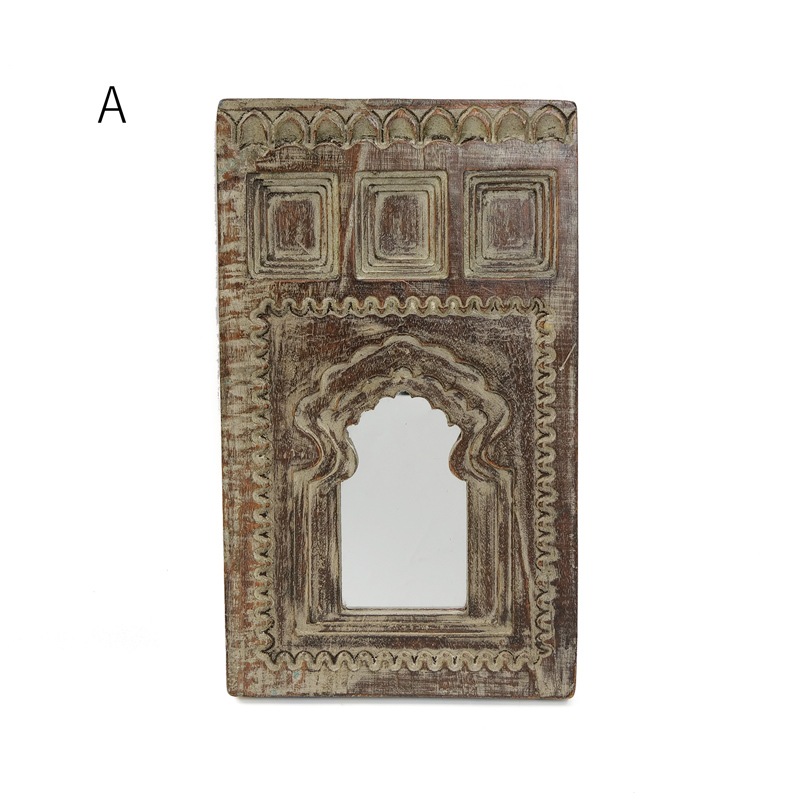 家具や木製ドアに使用されていた古材をリメイクしたミラー。使い古された木材ならではの擦れ感が味わい深い。1つ置くだけで雰囲気が出ますね。