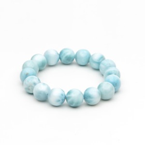 世界三大ヒーリングストーンの一つといわれているラリマーの丸玉ブレスレット。13mm玉を使用したブレスレットです。ライトブルーと白を基調にしたさわやかな色合いです。