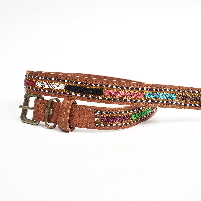 インド、ラジャスタン州ジョドプールの民芸品。刺繍の色や柄は現地の縫い子さんにおまかせ。のびのびと描かれた花柄にストライプ、幾何学模様にうっとり。エスニックスタイルはもちろん、シンプルな装いのアクセントしても。