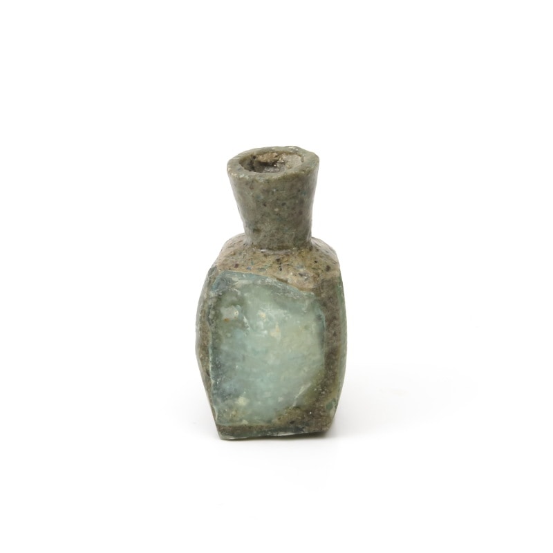 うっすらと銀化が見られるローマングラスの欠片を貼り合わせて作られた小瓶です。お家に飾るインテリアとしてどうぞ。