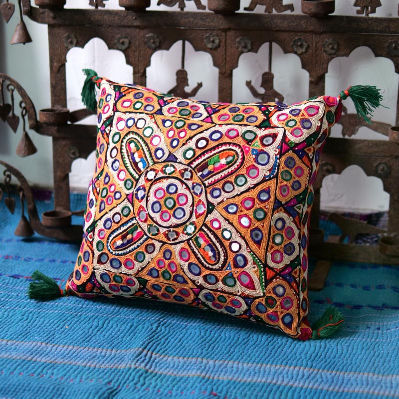 ラバリ族のミラーワーク刺繍クッション