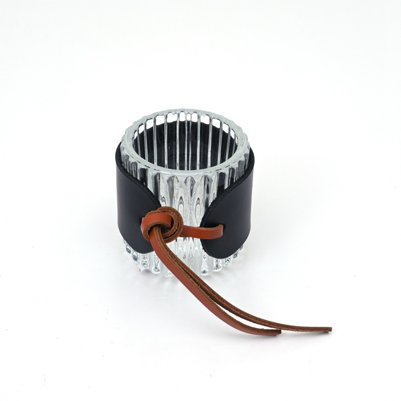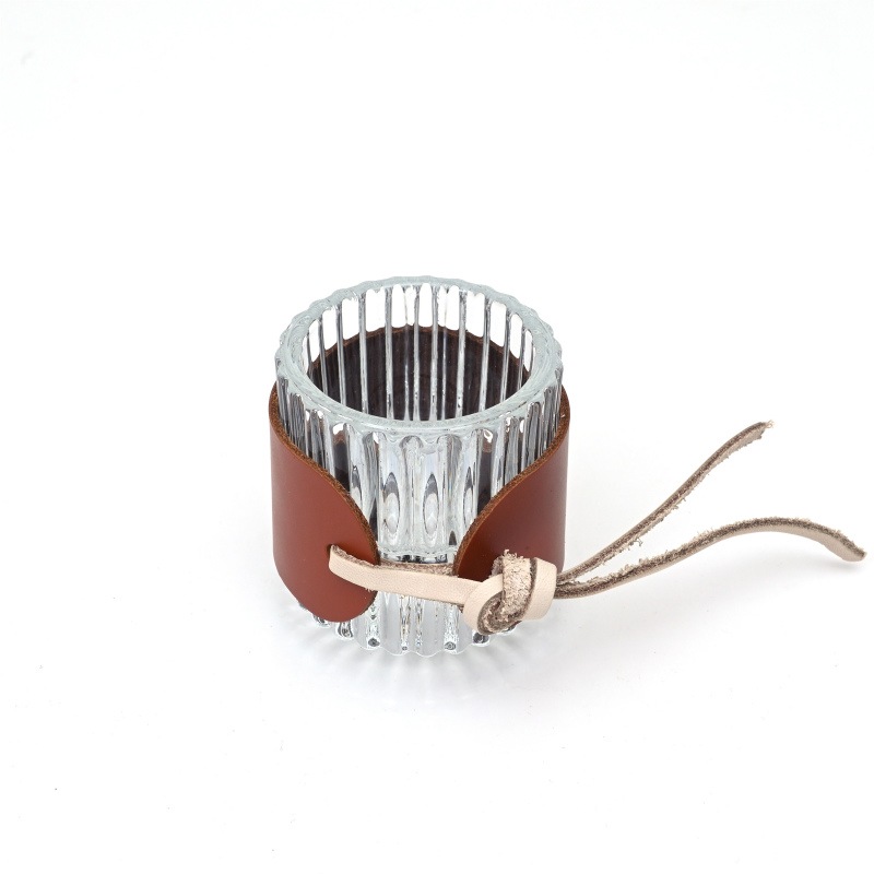 レザーとガラスのシンプルなキャンドルホルダー