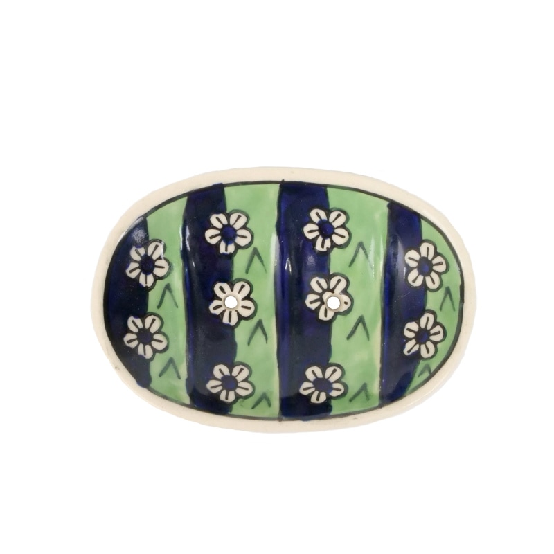 ジャイプール伝統の陶器ブルーポタリーのソープトレイです。ブルーポタリーの柄は植物柄の伝統的なものとなっています。日常に伝統を取り入れやすい一品。
