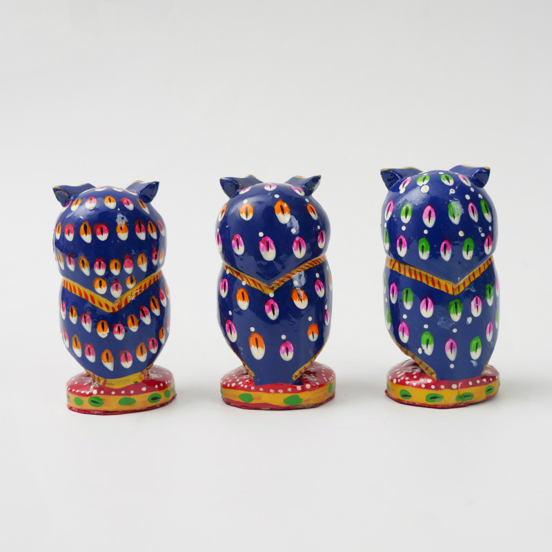 鮮やかなペイントが特徴的なフクロウ。ハンドメイドだからこそ、それぞれ表情が異なるのがポイント。たくさんいると愛らしさ倍増。配色・サイズ・表情ご指定いただけません。どんなフクロウが届くかお楽しみに!