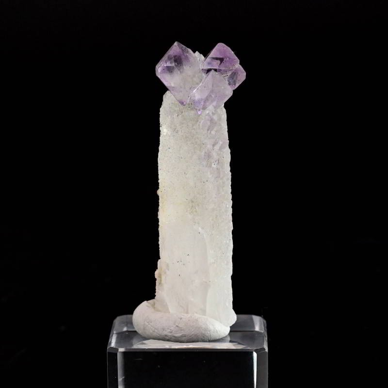 マダガスカル・アンディラムナ産のアメジスト標本。クォーツ結晶の先端に淡いパープルのアメジスト結晶が共産したリバースセプター状の結晶標本です。