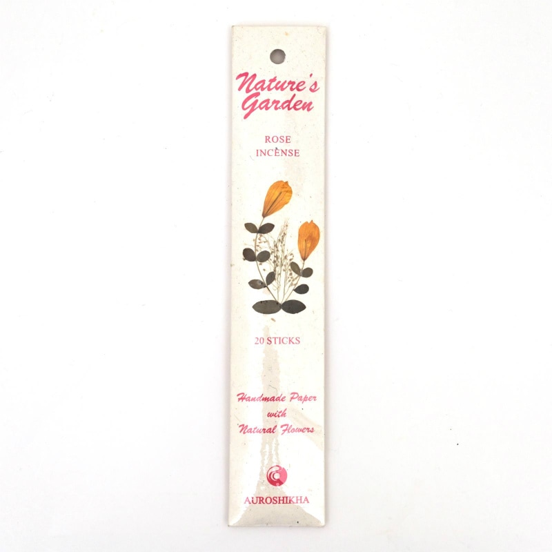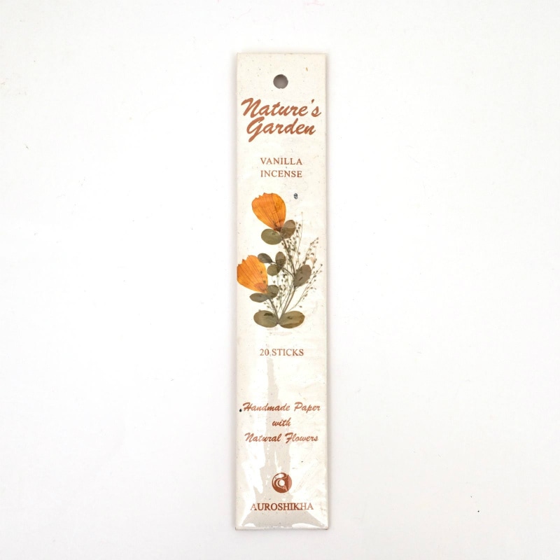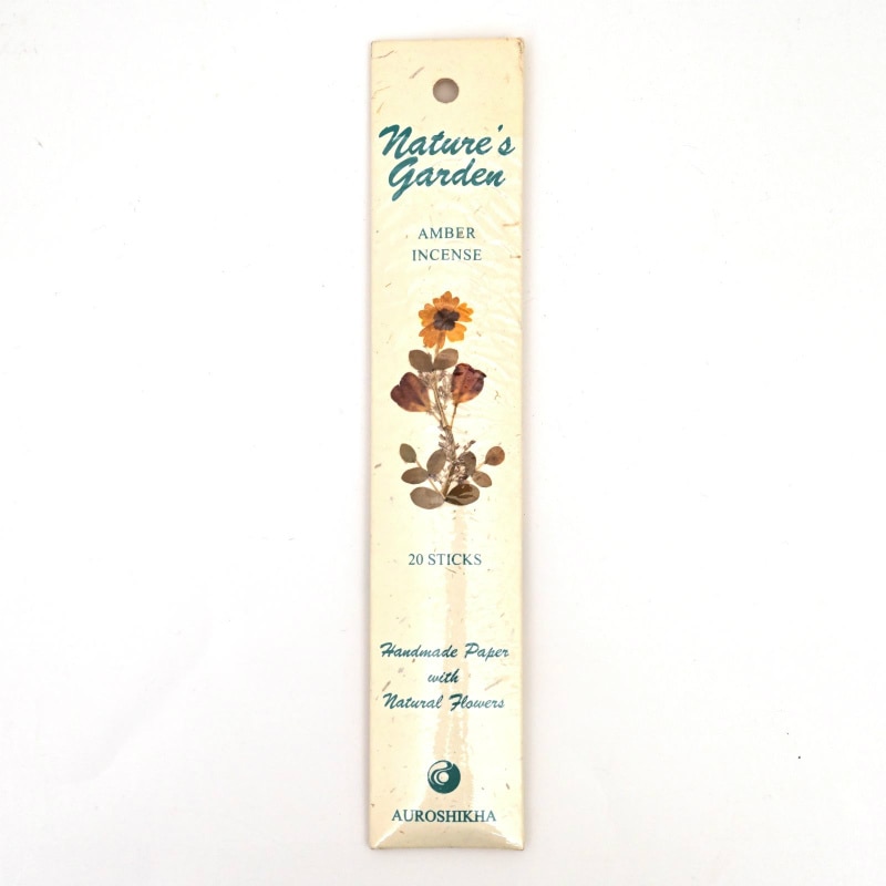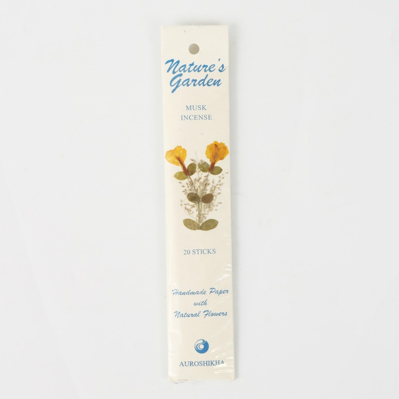 オウロシカ香はオーガニックで栽培された天然原料より作られており、環境、人体にもやさしく、国際フレグランス協会の基準を満たしたお香です。ナチュラルガーデン香はオウロシカ香の中でも厳選された原料よりつくられたハイグレードなものです。パッケージにもこだわり、ハンドメイドペーパーにドライフラワーを貼り合わせています。 オウロシカ香の作られている南インドのオーロビルは、哲学者のスリ・オールビンド氏により「平和と自給自足」を理想として作られた実験型エコビレッジで、科学物質を排除し、伝統的な手法により様々な製品が作られています。オウロシカ香はこのビレッジの重要な収入源であり、多くの雇用を生み出し、ビレッジの人々の生活に役立っています。