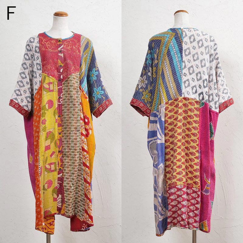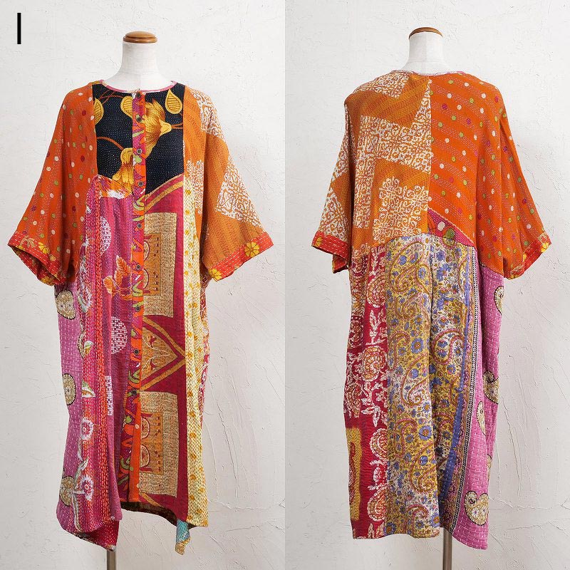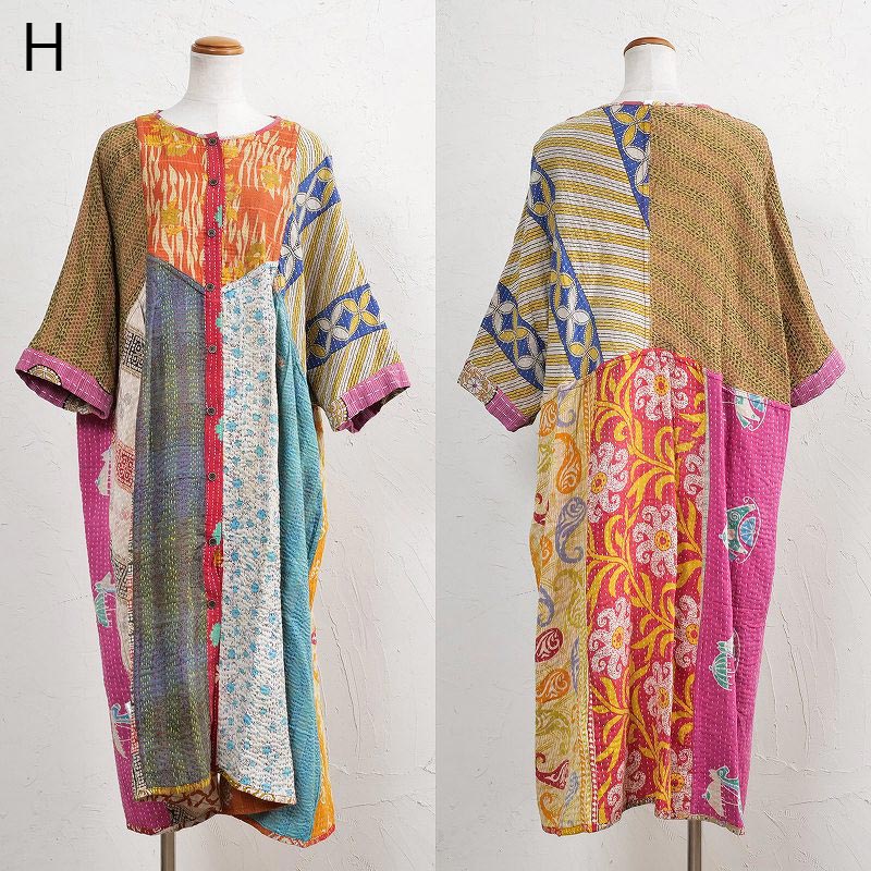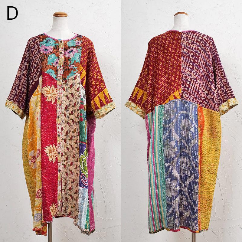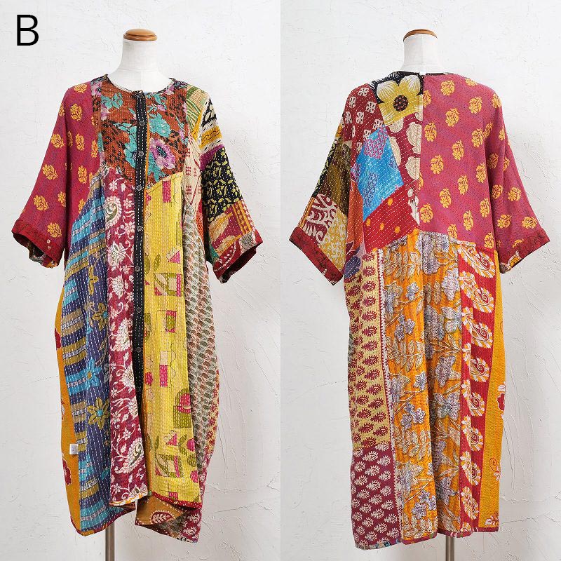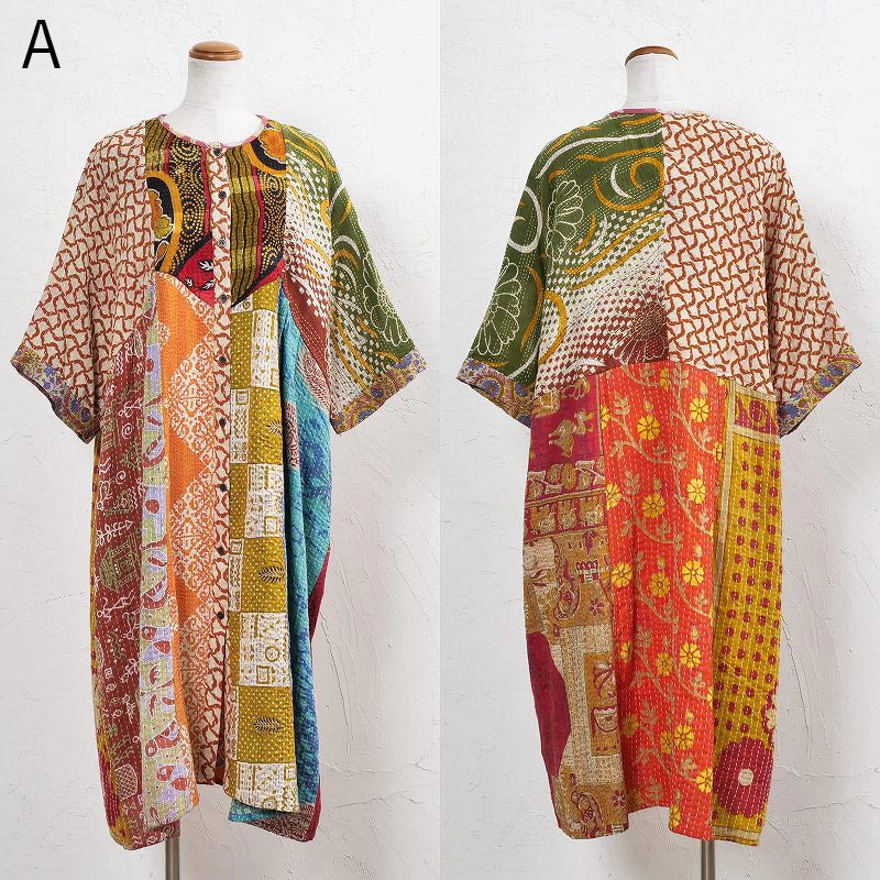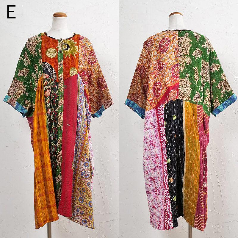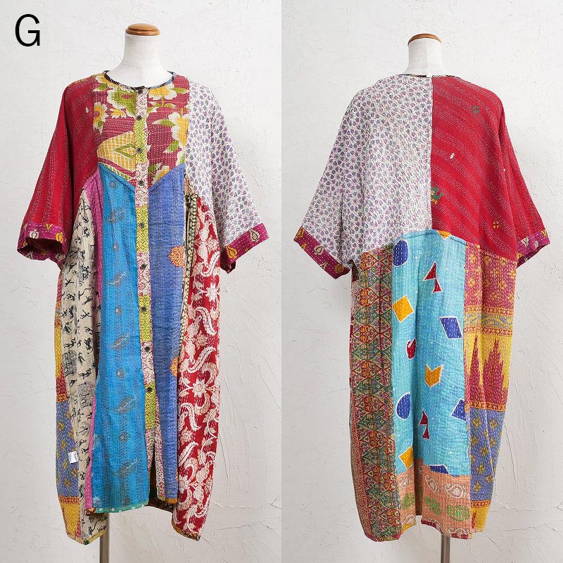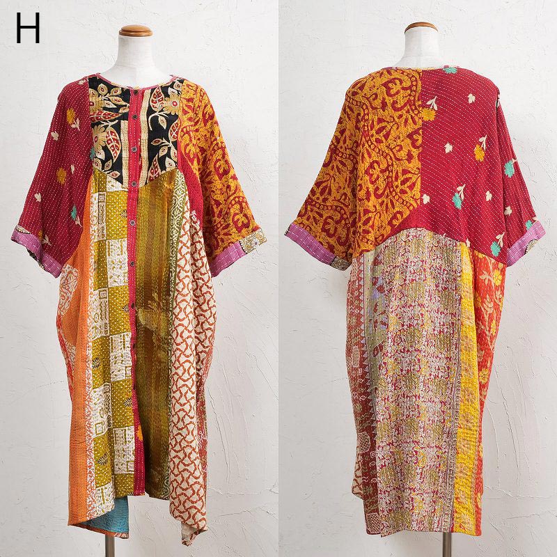 様々な色合いの生地をパッチワークして、色鮮やかで華やかに仕上げたロングコート。七分袖で季節の変わり目に着こなすこともでき、ロングシーズン着られるアイテム。リバーシブルで着ることができ、たっぷりとしたラインで、中にドルマンスリーブなど袖回りがゆったりしたアイテムを合わせやすいのもポイント。個性豊かな着こなしが楽しめるシリーズです。