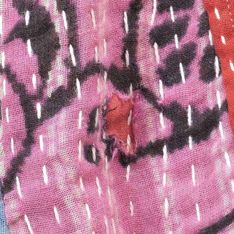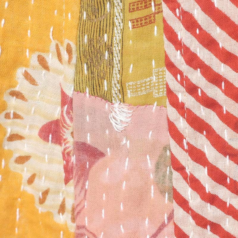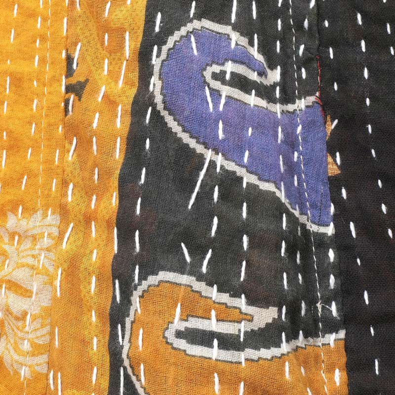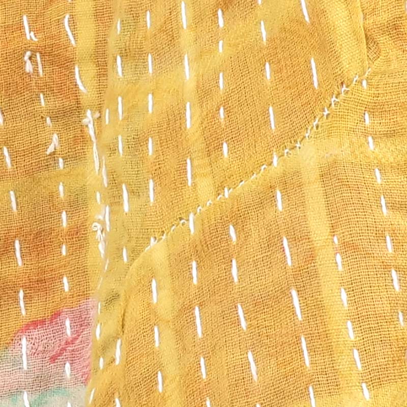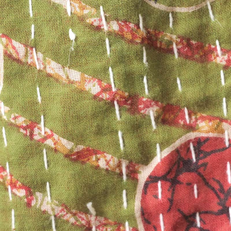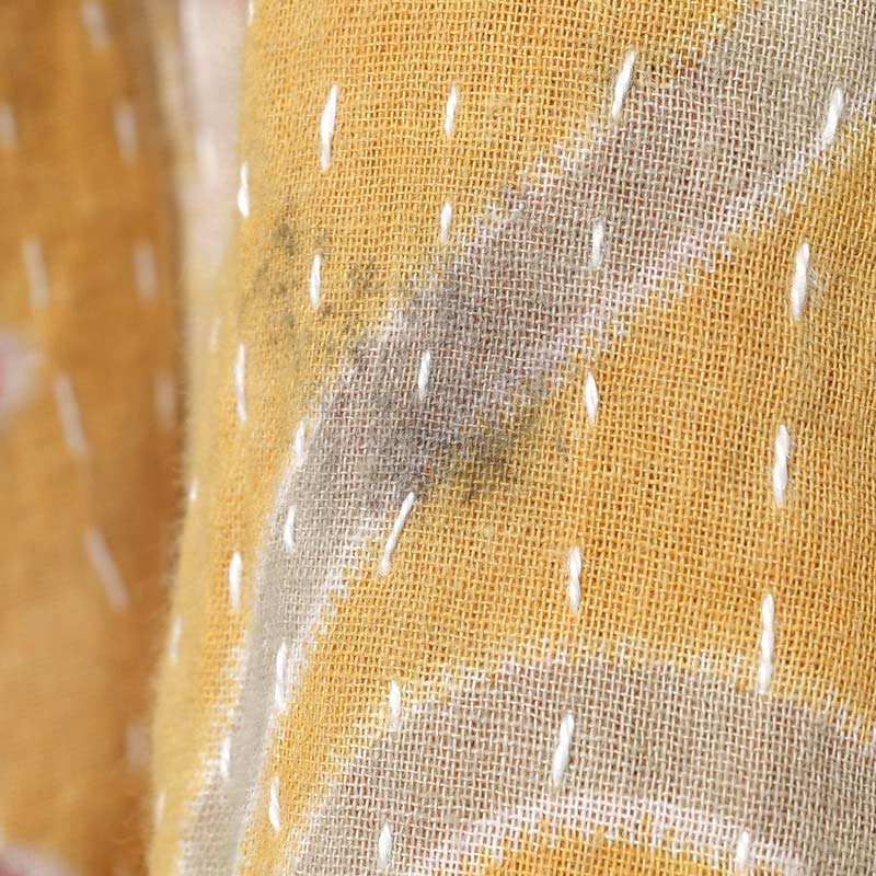 グドゥリー(Gudri)は西インドのグジャラートからきた刺し子を示す言葉です。別名ラリーキルトとも。着古した布を補強するため、二枚重ねにして布を繋ぎ上から刺し子を施していきます。 ものを大事にする心から生まれたこの伝統技法により、時間と手間をかけて布が新しく生まれ変わります。