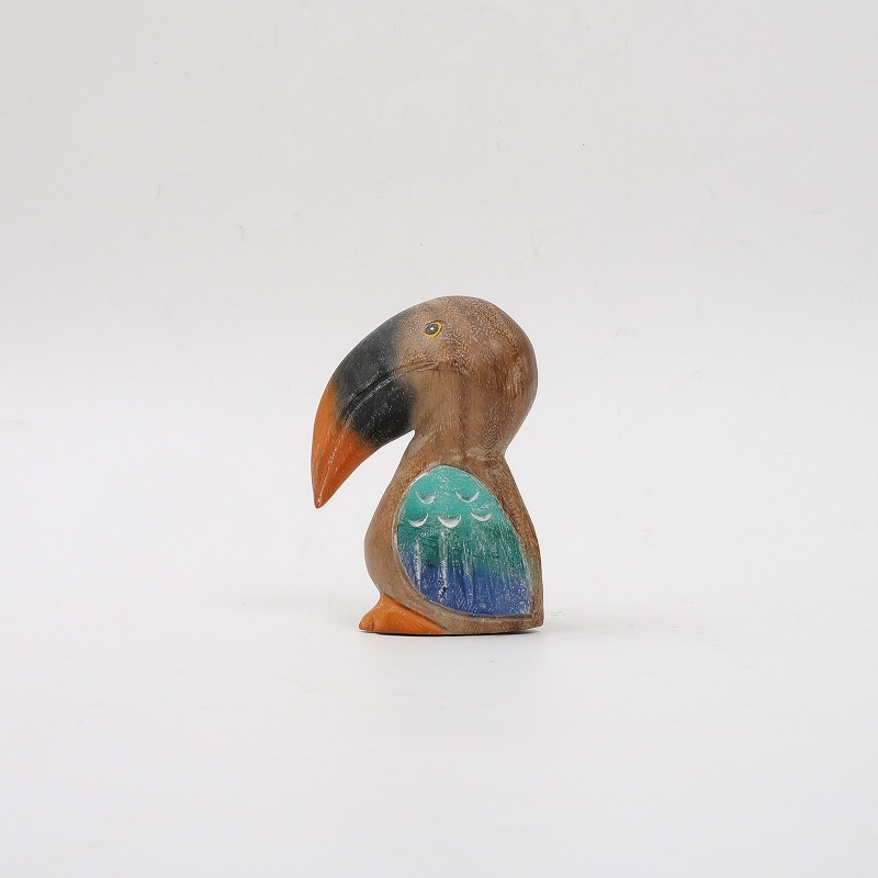 タイのモンキーポッドの木を使った木彫りのペリカンです。お部屋にインテリアとして飾っておけばほっこりさせられそうです。