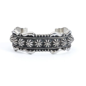 ナバホ族。1955年アリゾナ州生まれ、1970年代後半から制作開始。 兄にウィルソンジム。ベドニー姉弟やエディソンサンディスミスとも血縁があるシルバースミス家系で、家族の影響でシルバー製作を始めました。ヘビーゲージのシルバーを使うオールドスタイルを貫く彼の作品は様々な賞を獲得し、今では数少なくなった本当のオールドスタイルのスタンプワークが感じられるものばかりです。