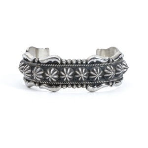 ナバホ族。1955年アリゾナ州生まれ、1970年代後半から制作開始。 兄にウィルソンジム。ベドニー姉弟やエディソンサンディスミスとも血縁があるシルバースミス家系で、家族の影響でシルバー製作を始めました。ヘビーゲージのシルバーを使うオールドスタイルを貫く彼の作品は様々な賞を獲得し、今では数少なくなった本当のオールドスタイルのスタンプワークが感じられるものばかりです。