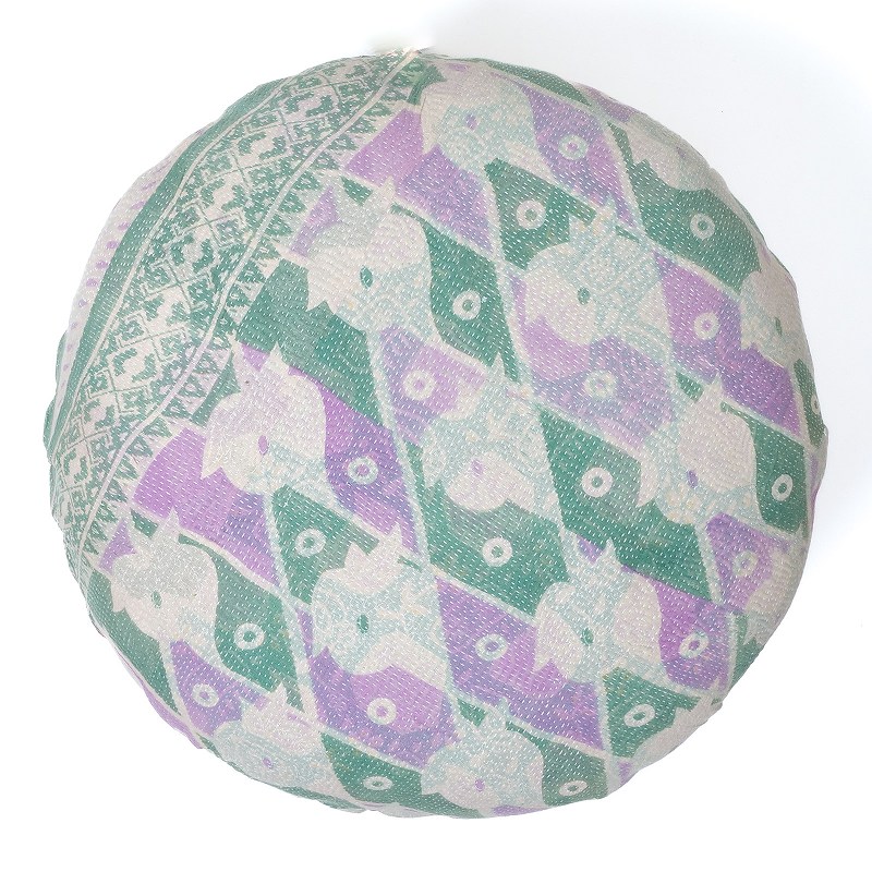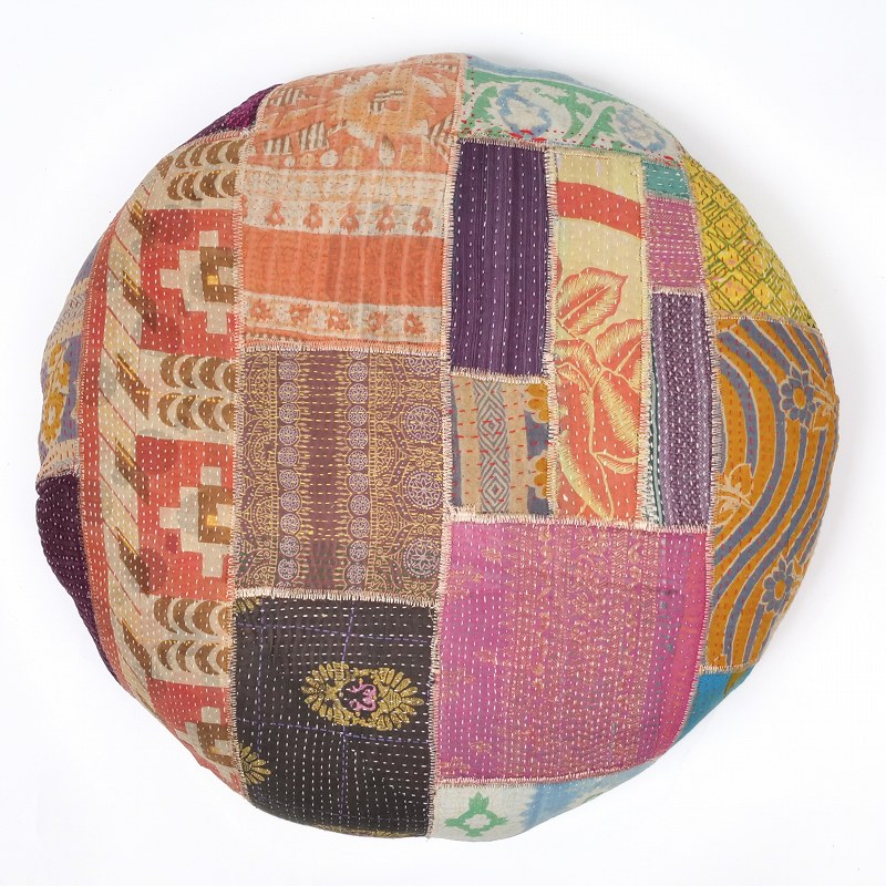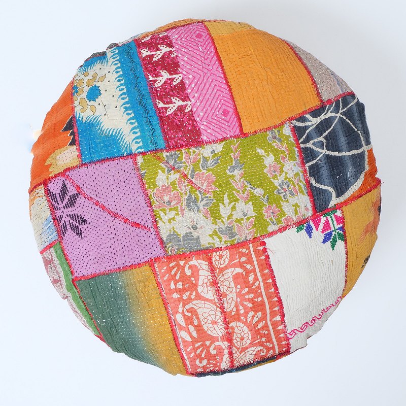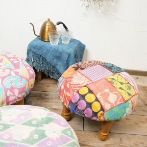 程よい弾力で厚みがあり、しっかりとした安定感で座れる。オットマンや肘掛けとしても使え、コンパクトな組み立て式だから一人暮らしのお部屋にも取り入れやすさが魅力的。パッチワークタイプと一枚布のプレーンタイプの二種類。カラフルな古布を使っているのでお部屋が華やかな雰囲気に。
