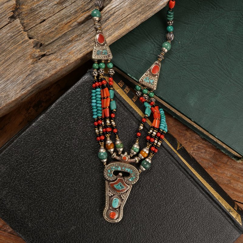 ヴィンテージのシルクロードスタイルジュエリーです。チベットの装身具にルーツを持ち、イスラームやムガールの文化を融合させ、ネパールで作られたもの。