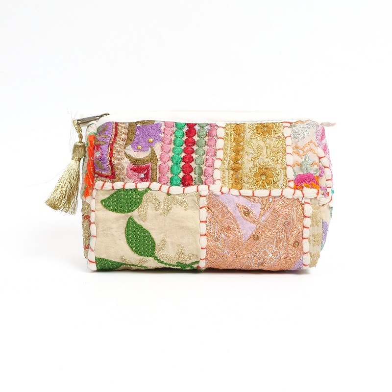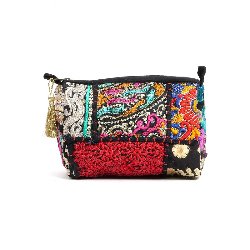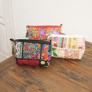 華やかな刺繍の組み合わせで人気のカンバディア生地を使ったポーチ、2サイズ展開です。3色展開ですが、一点物の生地を使用しているのでそれぞれ柄は異なります。ご自身用にももちろんですが、ハンカチやアクセサリーなどと組み合わせてプレゼントにしていただくのもおすすめです。