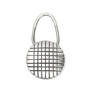 トーマスジムのスタンプワークキーホルダーです。コンチョ型の重厚シルバーワークがほどこされた贅沢小物。鏡面シルバーにチゼルで刻まれた深い格子柄はナバホの伝統であるウィービング(毛織物)を想起させます。高級感あり、長年かけて育てたらいい味になりそう。リング部分に鍵をつけたり、バッグやベルトループにアクセントとして着けたり。