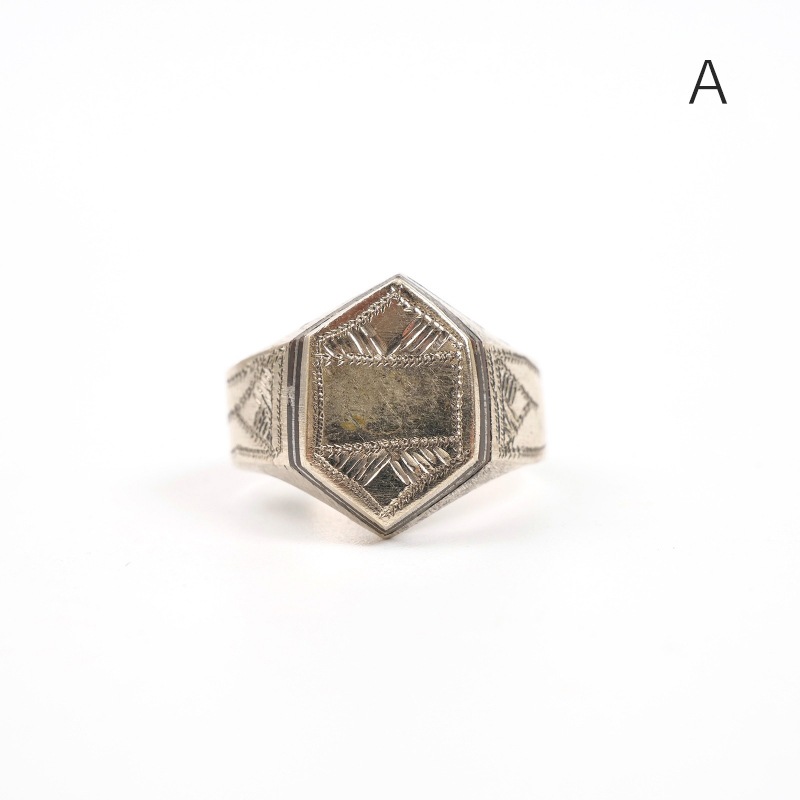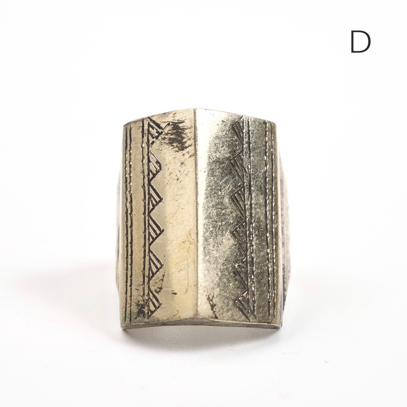 少し重たいヴィンテージな雰囲気たっぷりのトゥアレグリング。細かな彫刻と無骨なシルエットの対比が美しいオリエンタルなアクセサリーです。大きめサイズなのでチェーンを通してペンダントにしても存在感抜群。
