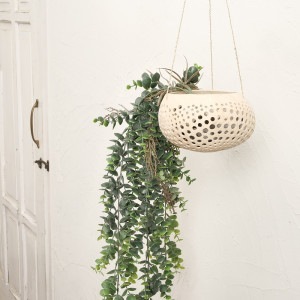 天然のココナッツシェルの中身をくりぬいて作ったハンギングタイプのボウル。ナチュラルな色合いがどんなタイプのお部屋にもマッチやすい。壁からフックで吊るしてちょっとした小物入れに。