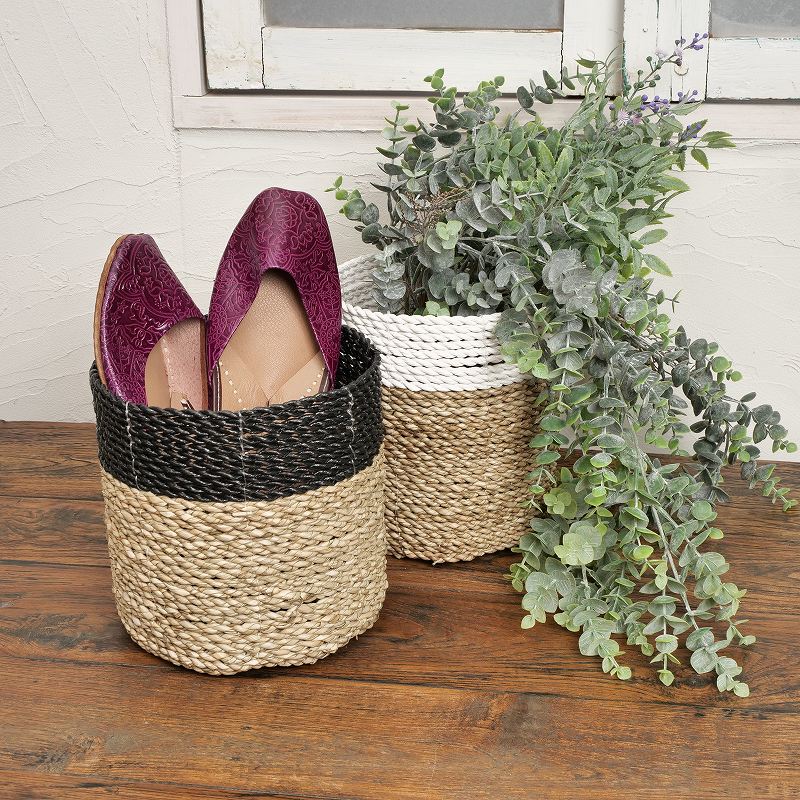 シンプルなモノトーンのラインが入ったバスケット