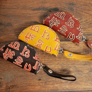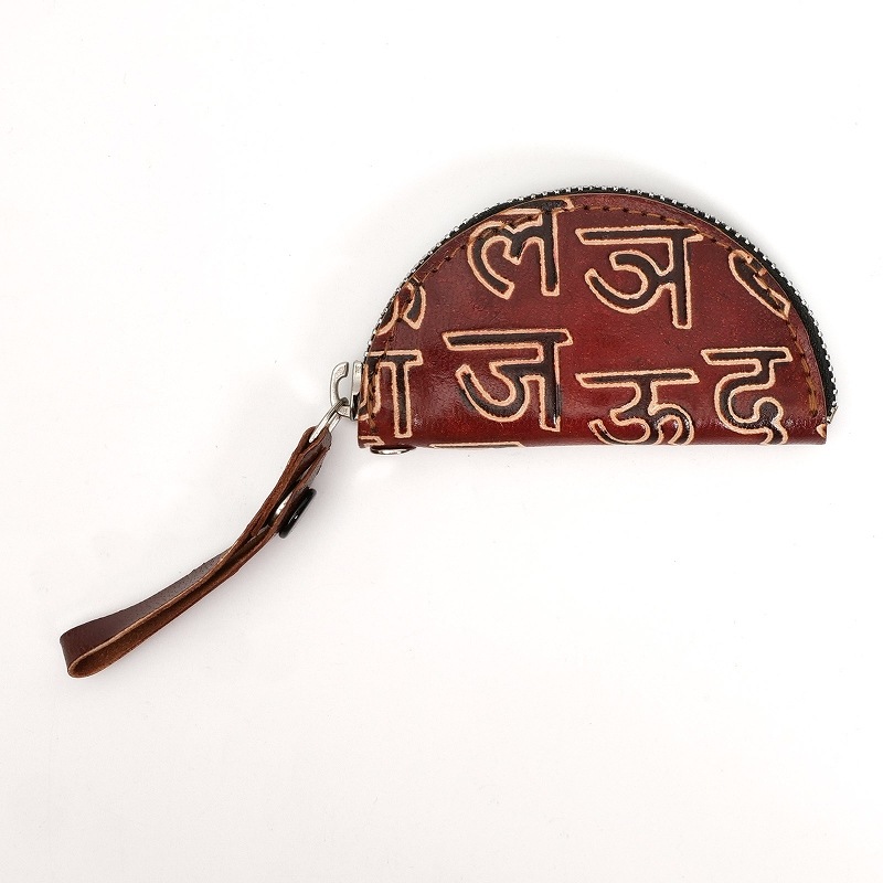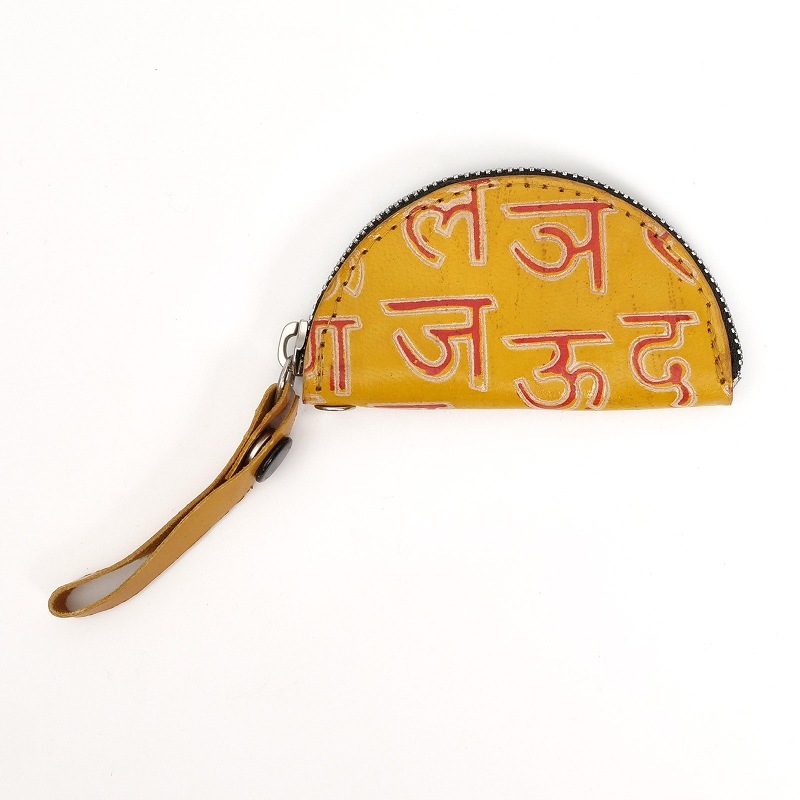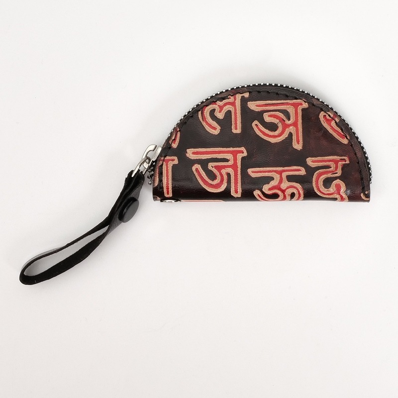デーヴァナーガリーはヒンディー語やネパール語の表記に用いられる文字で「神聖なる都市文字」という意味。そのデーヴァナーガリー文字を1字ずつランダムに配置した柄のシリーズです。小ぶりな半円型のキーケースで、スナップボタンで着脱可能なストラップをバッグの持ち手などにつけて使用することができます。キーケースとしてはもちろん、鞄の中でなくしたくないイヤホンやアクセサリーなど小物を入れるのも便利。