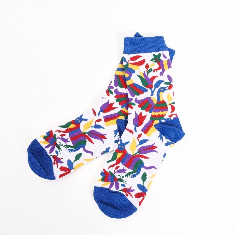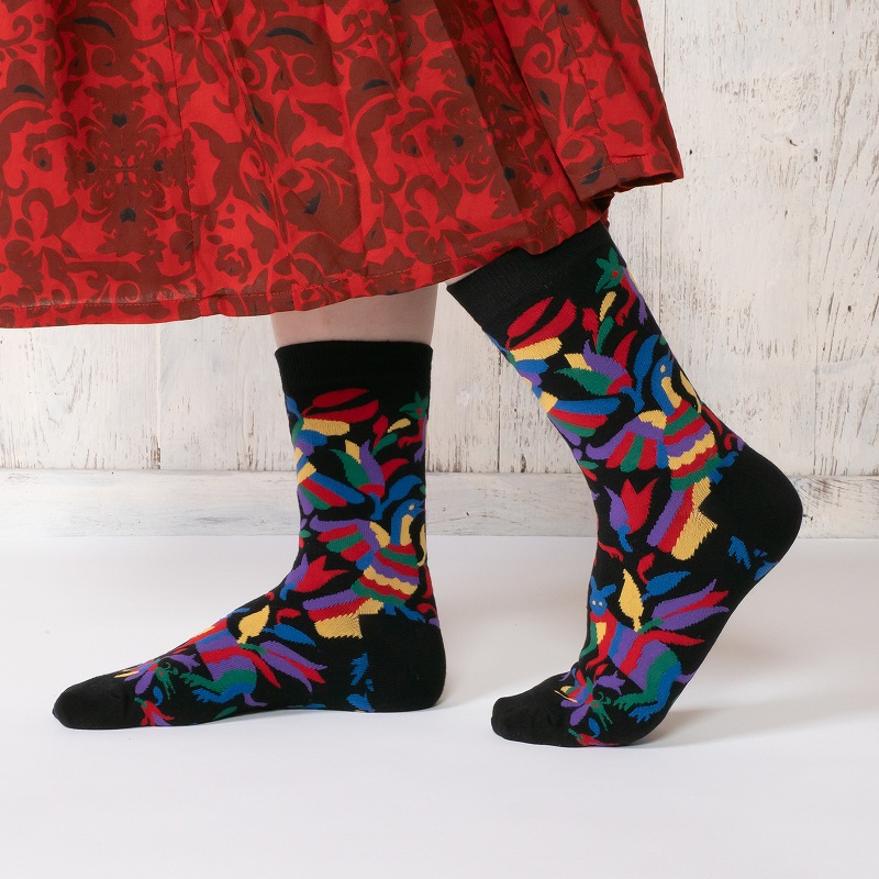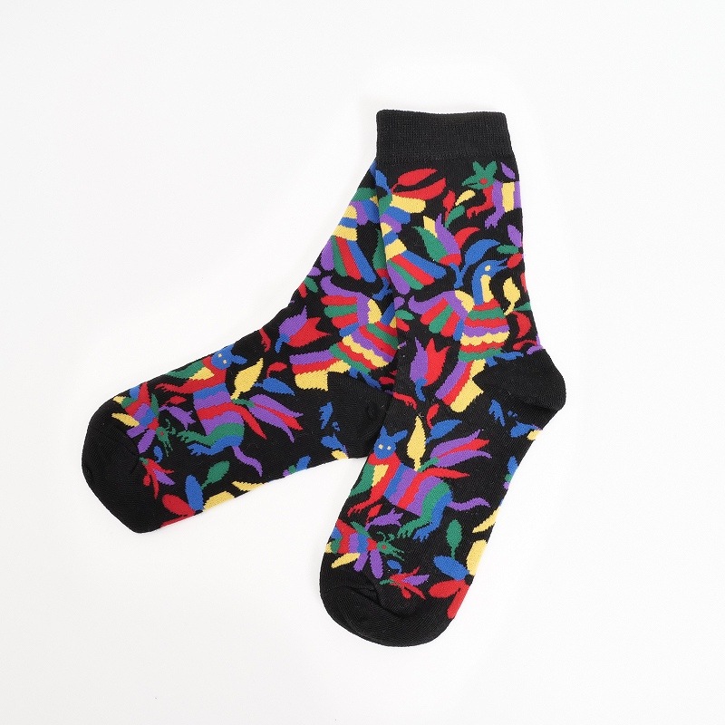 マライカオリジナルデザインのクルー丈ソックス。メキシコの先住民族・オトミ族の手刺繍がモチーフ。クルー丈でシューズやショートブーツとの相性抜群です。