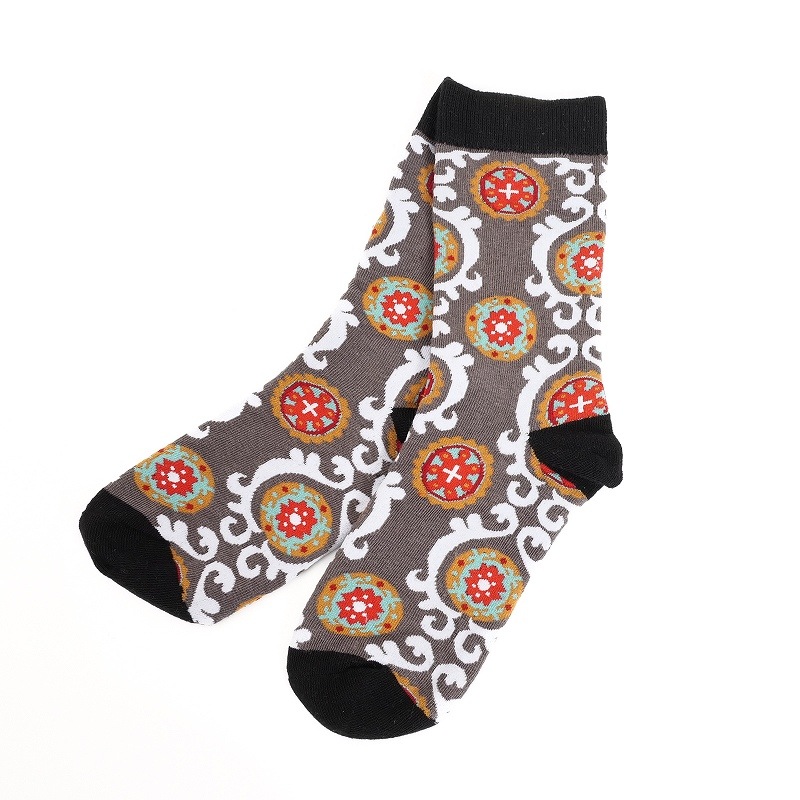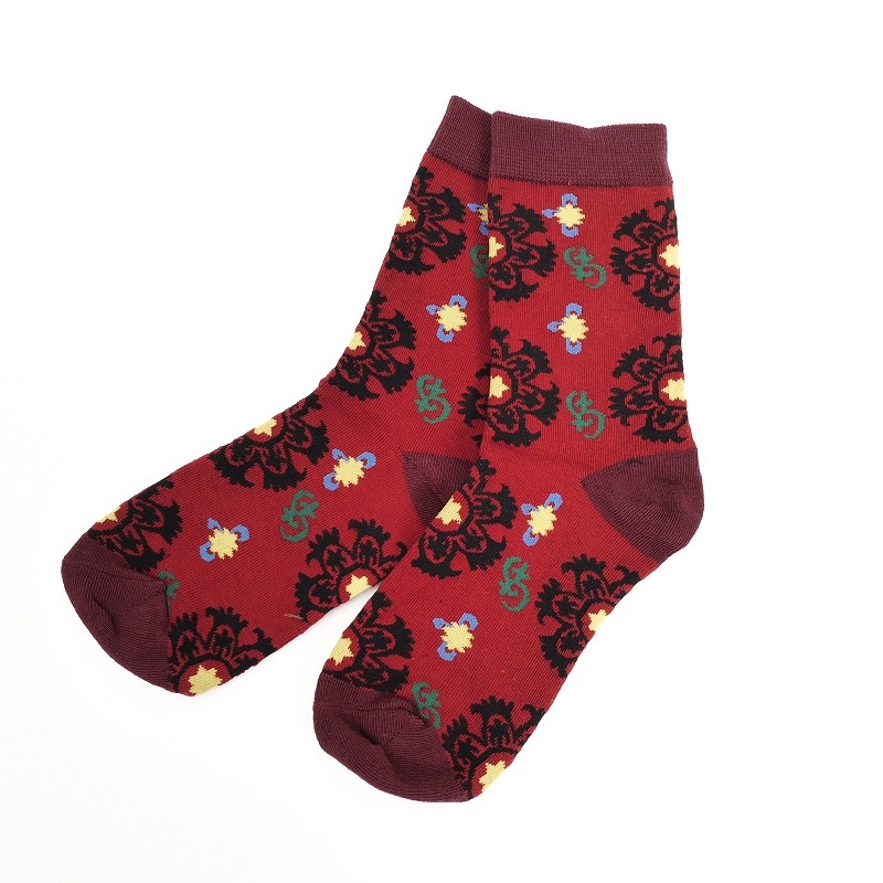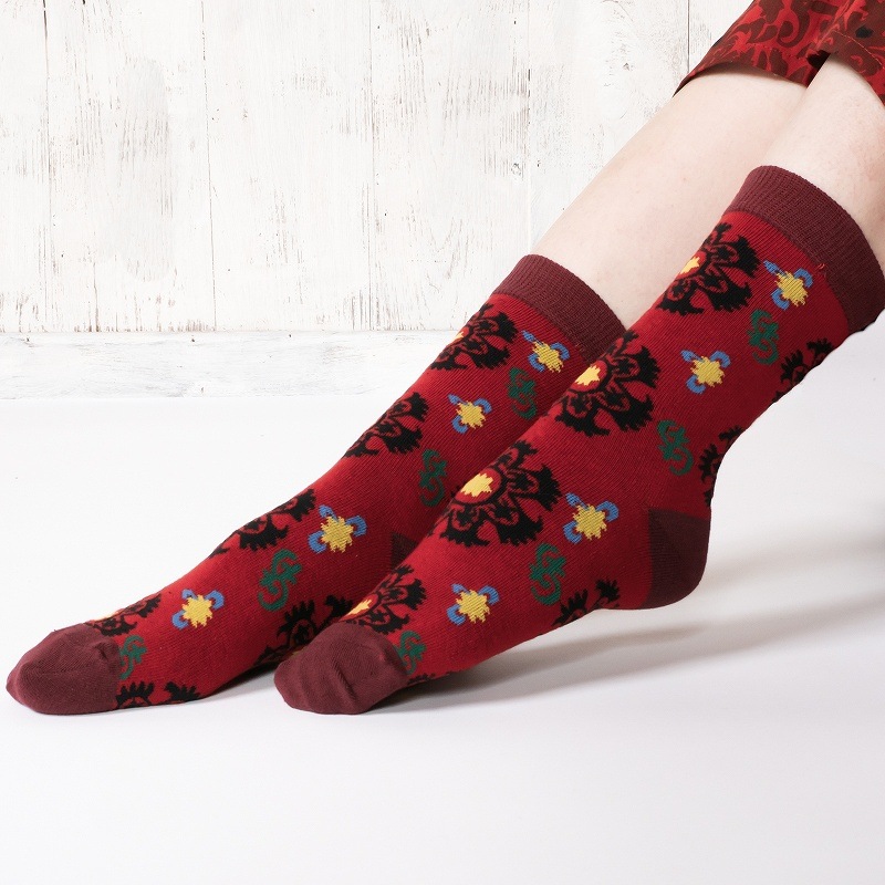 マライカオリジナルデザインのクルー丈ソックス。中央アジアの遊牧民に伝わるスザニ刺繍がモチーフ。クルー丈でシューズやショートブーツとの相性抜群です。
