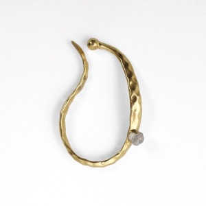 トップパーツのレインボームーンストーンは「幸運を呼び込む」と言い伝えられています。自然な凹凸の表面と雫のようなシルエット、ストーンのトップの組み合わせはシンプルながらも印象的なデザイン。着用の際は優しく指で押さえるようにご調整ください。ピアスの穴がなくてもつけられるやさしいアクセサリーです。