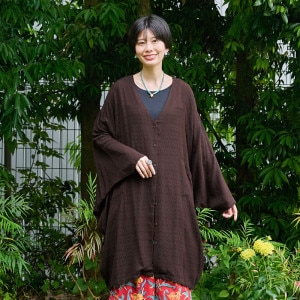 | サイズ (FREE) | 着丈:前身頃65cm 後ろ身頃68.5cm 身幅:71.5cm 裾幅:53cm 袖丈:68cm(襟ぐりから採寸) 袖口:17cm |