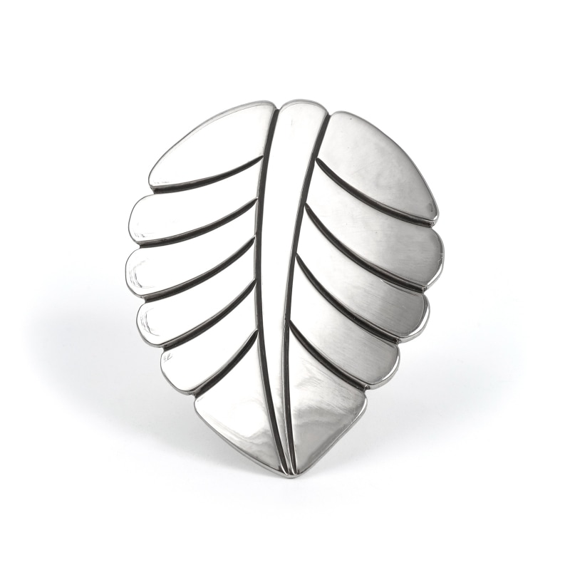 スティーブイエローホースのスタンプワークリングです。近年アメリカで大流行のビッグリングタイプ。スティーブイエローホーの人気デザインのリーフは、大きくても他のスタイルに合わせやすく飽きが来ないのが特徴。リング部分はアジャスタブルになっているので多少調整ができます。