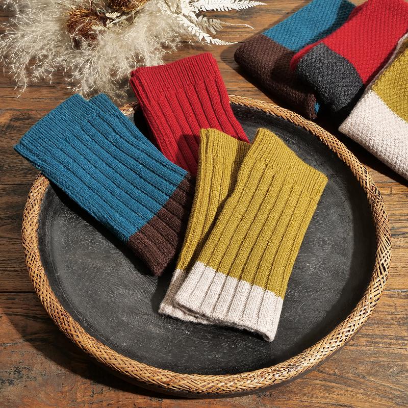 すっきりとしたリブとバイカラーがポイントのアームウォーマー。スマホ操作やネイルを邪魔せず、手首から手の甲をしっかりと暖めてくれるファッション性と実用性を兼ね備えたアイテム。バイカラーが差し色として、暗くなりがちな冬のコーデを明るく引き立てます。持ち運びしやすいコンパクトさも嬉しいポイント。