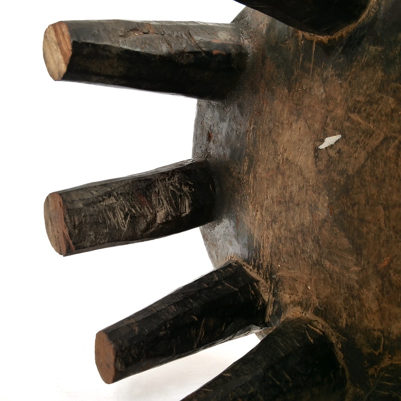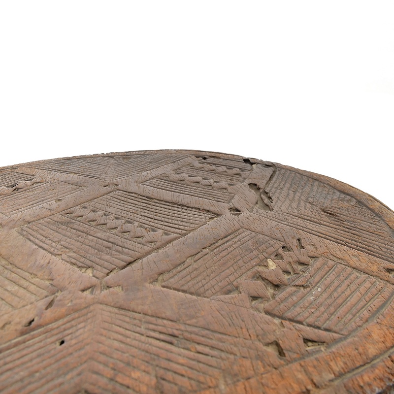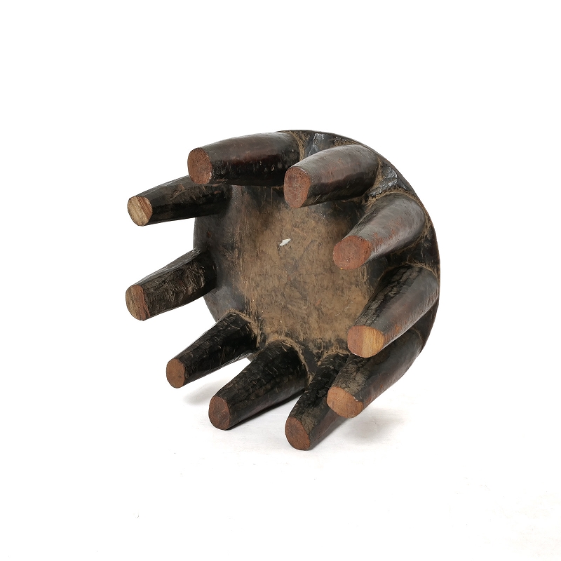 大きな丸太をそのまま一刀彫りでくり抜いて作られたウッドスツール。細かい彫りが施された座板や複数の立派な脚が特徴。小物置きやオブジェとして普段のインテリアに取り入れてはいかがでしょうか。