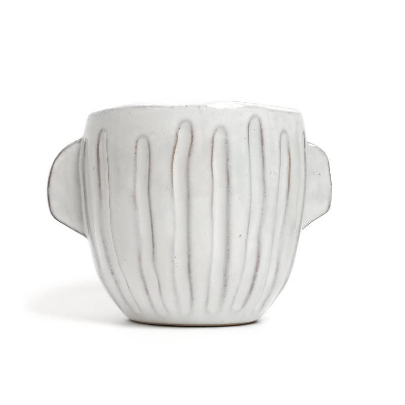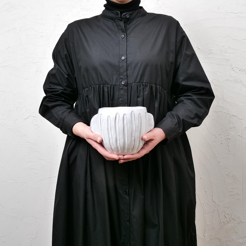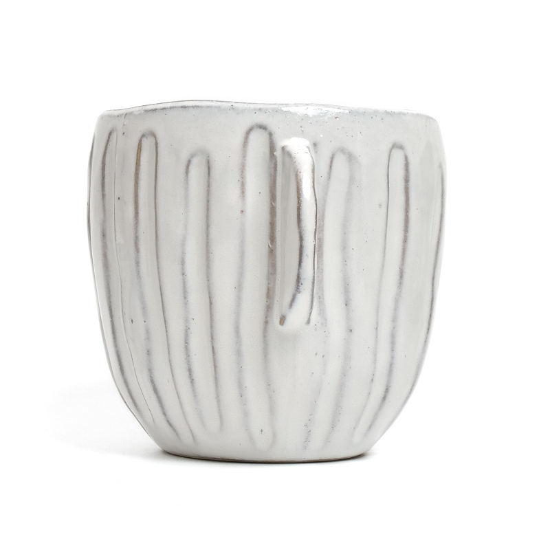 どんな植物とも合わせやすく、空間をやわらかく演出できる丸みを帯びたフォルムが特徴の植木鉢。クラフト感のある縦に入った彫り模様がナチュラルな風合いを引き立て、温かみを感じさせます。広めの開口部で植物の植え替えがしやすそう。屋外使用でも色あせしにくい陶器製です。