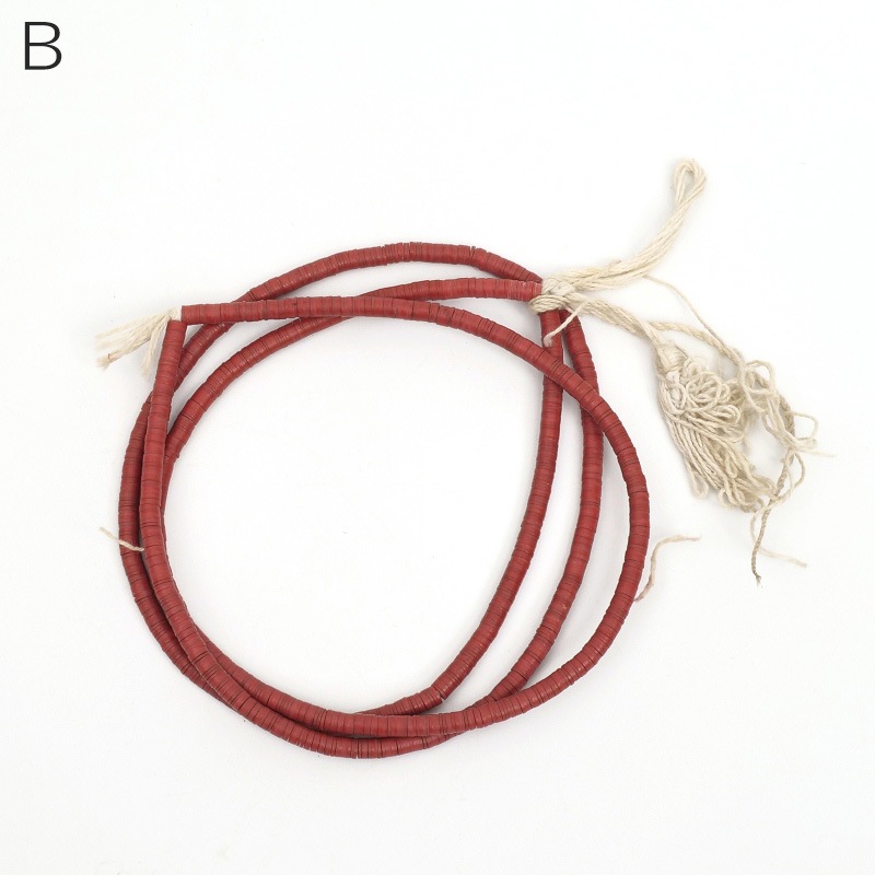 | サイズ | タイプA 長さ:約78.5cm(紐を含む) ひと玉のサイズ 最大5.7mm×1.3mm タイプB 長さ:約85.5cm(紐を含む) ひと玉のサイズ 最大3.9mm×1.3mm タイプC 長さ:約80cm(紐を含む) ひと玉のサイズ 最大7.9mm×2.9mm |
