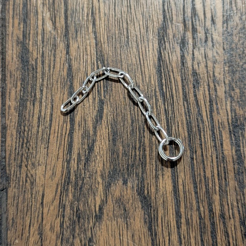 | サイズ | チェーン部分:5cm(丸カンを除く) 丸カン直径:0.7cm チェーンひとコマのサイズ:0.7cm×0.3cm |