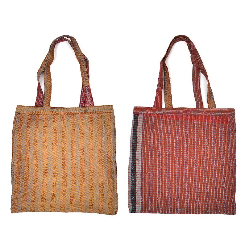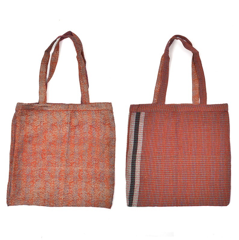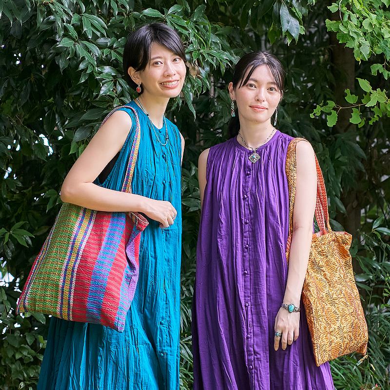 シルクサリーとガムシャタオルを組み合わせてステッチした新しいグドゥリー商品です。シルクの光沢感があるグドゥリーと、ガムシャタオル生地を1点で2種類楽しめるリバーシブル。シンプルなマチ無しタイプなので、普段使っているバッグに忍ばせておいてサブバッグやショッピングバッグにするのもおすすめ。
