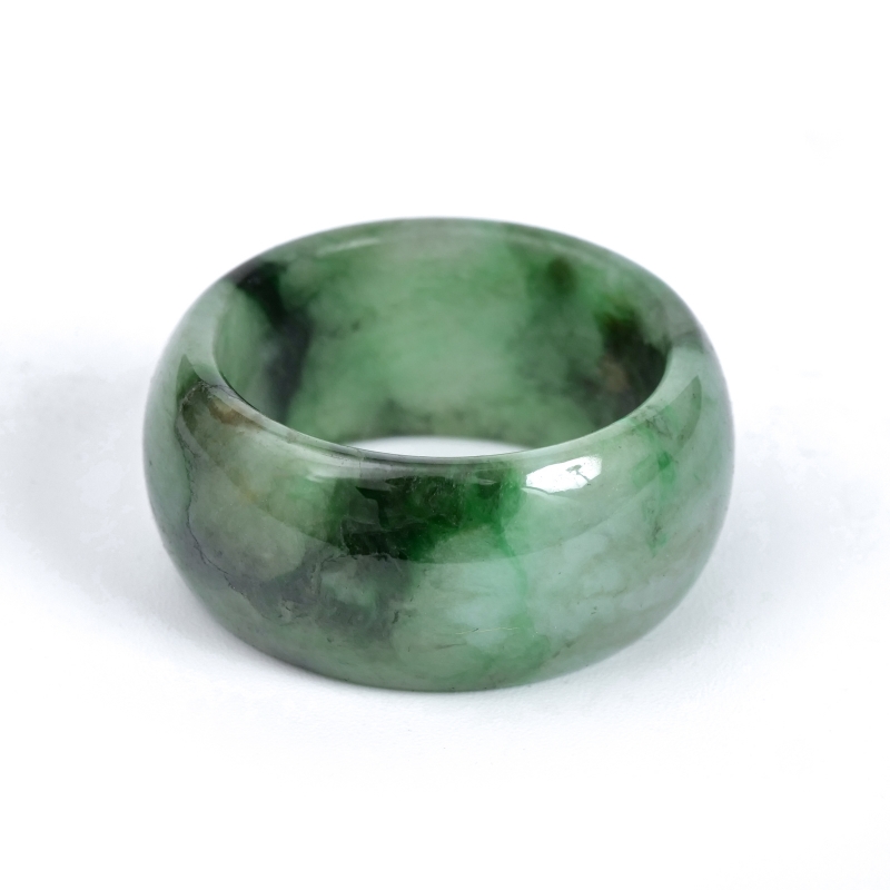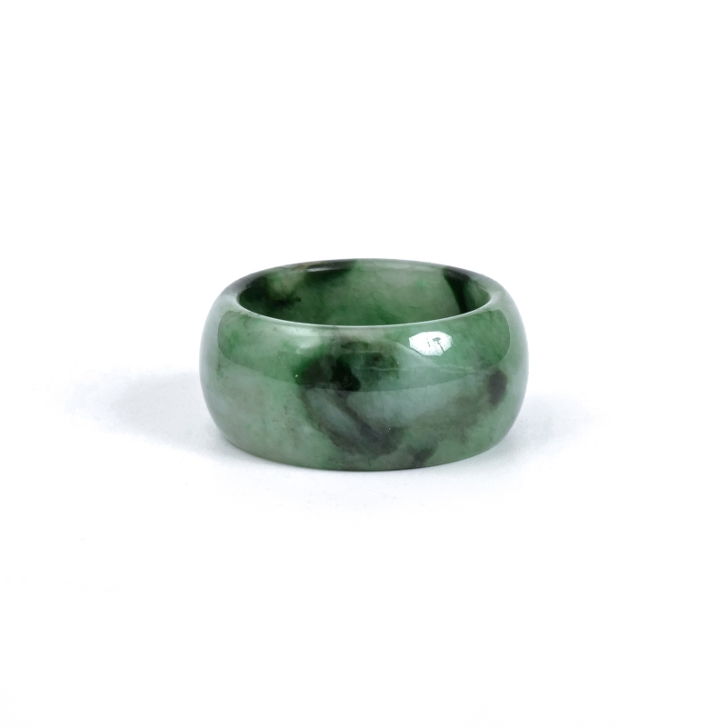 肌当たりがよく、ボリューム感のある幅広タイプの本翡翠リング。所々にリボン状に浮かぶ鮮やかな緑色が、美しく個性を引き立てます。翡翠特有のしっとりとした艶感が、指元に上品な輝きを添えます。古くから「成功」や「繁栄」を象徴する石として親しまれ、特別な日の装いにはもちろん、日常のコーディネートにも自然に馴染むデザイン。ひとつひとつ異なる翡翠の表情が楽しめる、唯一無二の一点ものです。シンプルながらも存在感のあるデザインで、洗練された大人の魅力を演出。ご自分用にはもちろん、大切な方への贈り物にも最適です。