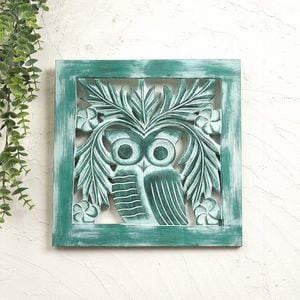 フクロウ×ハワイアンの組み合わせが斬新!スクエア型壁飾り