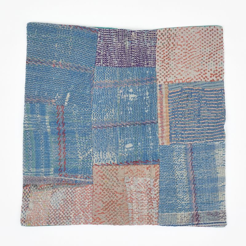 ユーズドのグドゥリークロスをパッチワークして作られたクッションカバー。通常のグドゥリー商品と違い、摩耗して刺し子部分の凹凸が際立っていたり、生地部分が薄くなったり破れて下に重ねた生地が見えていて、独特の風合いがあります。色柄やヴィンテージ度合いもそれぞれ異なる1点もの。淡い色合いがインテリアを柔らかい雰囲気にしてくれます。柔らかい肉厚のコットン生地で、時間の経過と共に偶然に生まれた色の組み合わせや、破れやツギハギの生地の表情が愛おしいアイテム。