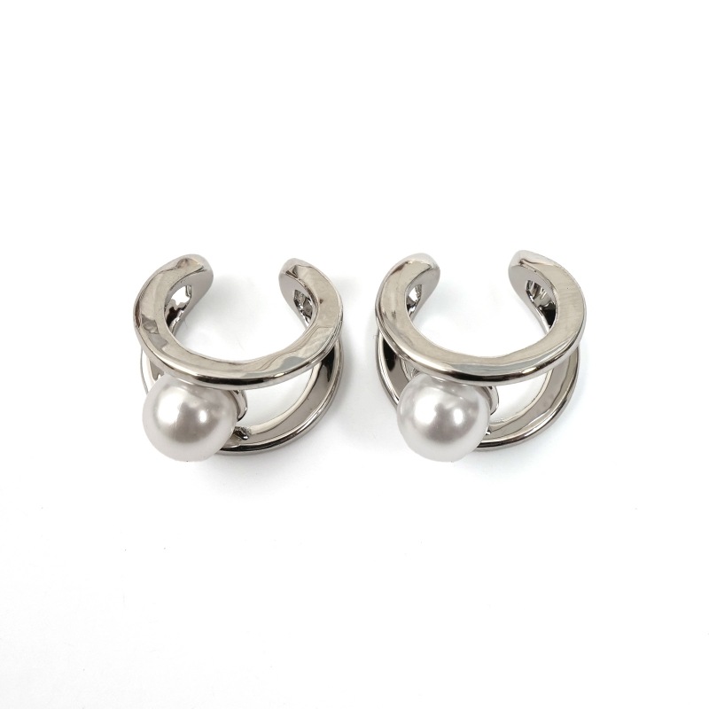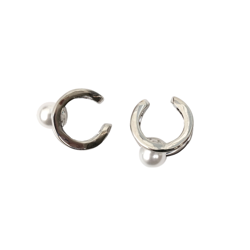 イヤーカフは、ピアスのように穴を開けずに楽しめるイヤーアクセサリー。こちらは両耳にシンメトリーに付けられるデザイン。シンプルなラインが引き立てるパールが印象的。上品な雰囲気のコーデにおすすめ。